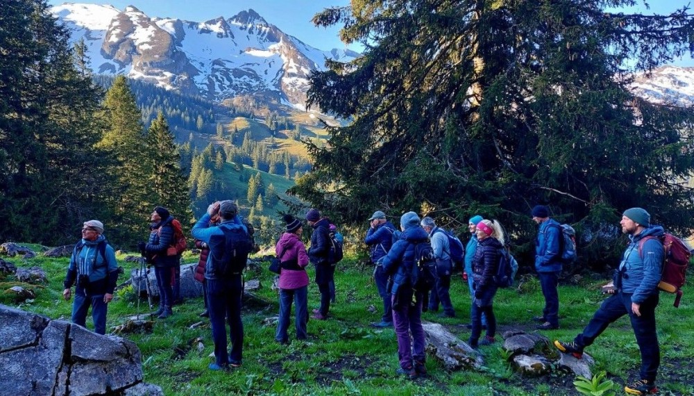 Solide Wanderausrüstung mit Sonnen- und Regenschutz. Fernglas von grossem Vorteil!