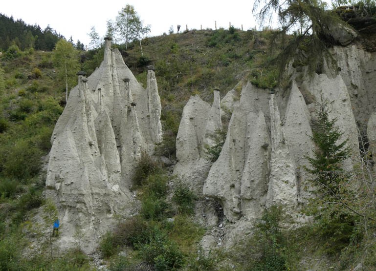 Denn glücklich sind wir ja. Wir haben in drei Tagen als Familie zwar nicht viele Berge gesehen, aber viel erlebt. Und auf die verschwitzten Kinder wartet nun ein Schwimmbad mit Kinderrutsche. Wir verbringen die nächsten Tage in einem Familienhotel, das sich der gemeinsamen Familienzeit verschrieben hat – es geht also weiter mit «Zeit haben». Im Entdeckerhotel Panorama Kiens bei Bruneck erholen wir uns von der Dreitageswanderung. Und machen noch eine kleine Wanderung zu den Erdpyramiden von Terenten. Die etwa sechs Meter hohen Säulen aus feinem Sedimentgestein tragen einen grossen, flachen Stein auf der Spitze, der sie vor prasselndem Regen schützt. Dieser hat mit der Zeit das Material rundherum weggespült und die Säulen zurückgelassen. Ein eindrücklicher Ort und ein schöner Abschluss unserer Wanderferien.