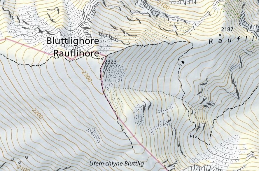 im Berner Oberland: Bluttlighore und Rauflihorn, auf der Landeskarte friedlich