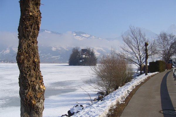 Der Eisenbahnknotenpunkt Arth‑Goldau ist Ausgangspunkt dieser Wanderung zu gefrorenen Gewässern. Hinter dem Bahnhof führt der Wanderweg gleich durch das imposante Bergsturzgebiet. Am 2. September 1806 lösten sich 30 bis 40 Millionen Kubikmeter Gestein am Rossberg und begruben 457 Menschen unter den Schuttmassen. Heute ist die Gegend ein beliebtes Naturschutz‑ und Naherholungsgebiet. Dazu gehört auch das Goldseeli, das mitten in die Steinblöcke eingebettet liegt. Bald darauf zeichnet sich der Ort Lauerz, am gleichnamigen See, ab. Lauerz wurde beim Bergsturz durch eine Flutwelle ebenfalls stark in Mitleidenschaft gezogen. Der Lauerzersee ist trotz seiner Lage zwischen hohen Bergen mit nur 14 Meter Tiefe einer der seichtesten Schweizer Seen. Die Wanderung entlang dem See folgt einem Spazierweg neben der Strasse. Immer wieder laden Eisformationen zum Verweilen und Fotografieren ein. Das Restaurant auf der Insel Schwanau, mit der berühmten Ruine und Kapelle, ist im Winter geschlossen und nur bei genügender Eisdecke zu erreichen. Am Ende des Sees liegt Seewen, wo sich der Bahnhof Schwyz befindet. Gleich bei der Autobahnüberführung steht das Restaurant Kreuz, das sich bestens für eine Mittagspause eignet. Nach dem Restaurant steigt der Weg aussichtsreich zur zweiten Husmatt auf dieser Wanderung, kurz vor Schräggigen, an. Die Sicht reicht über die Ebene von Schwyz bis zu den beiden Mythen. Nach Schränggingen kann die Route teils durch Tiefschnee führen. Wenn man gut auf die Markierungsstangen achtet, ist das kein Problem. Von Schräggingen ist es nicht mehr weit bis zur Holzbrücke über die Muota und zum Bahnhof Brunnen.