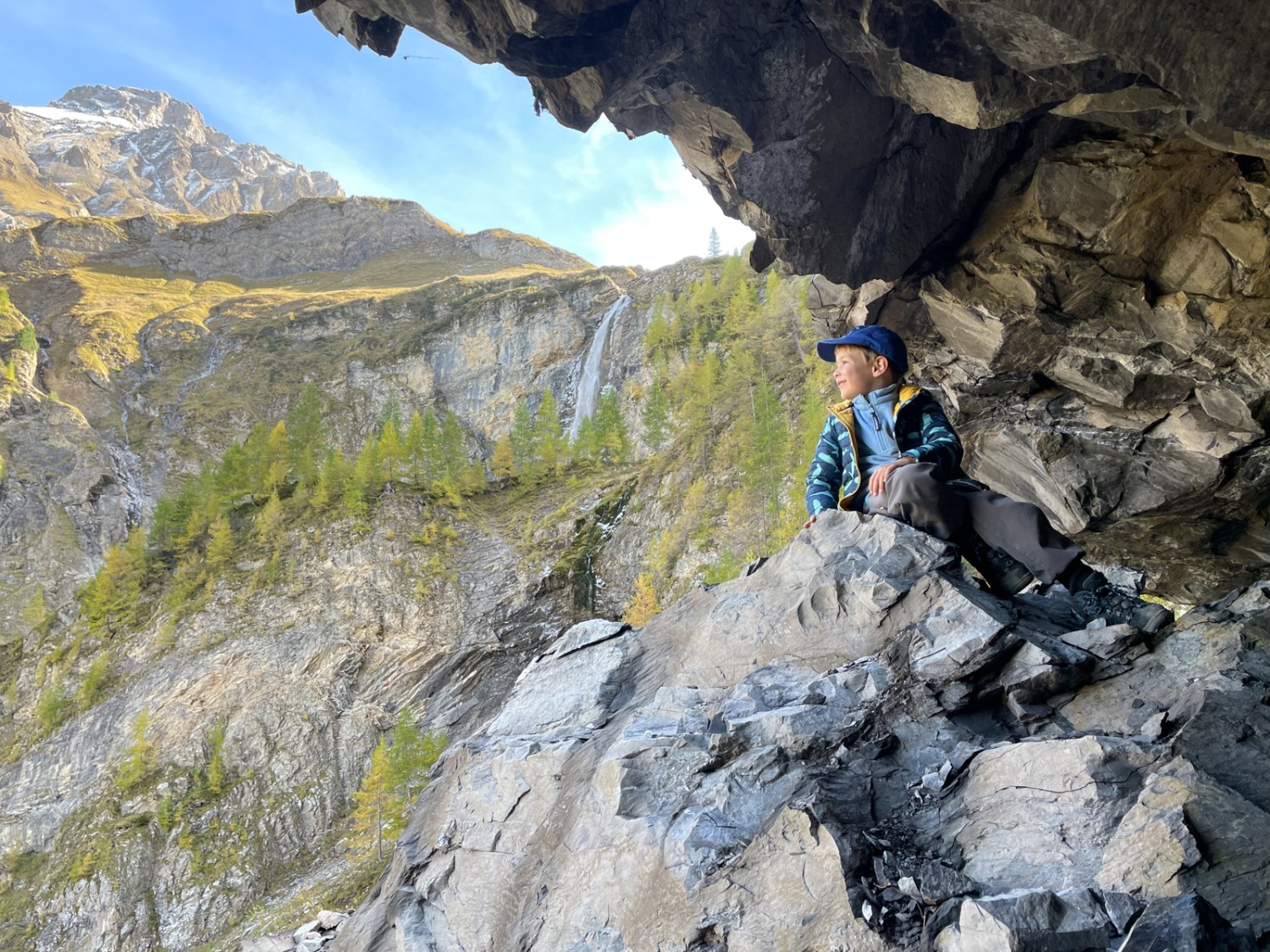 • Pause in einer Höhle mit Aussicht auf den Gälteschutz. Bild: Rémy Kappeler