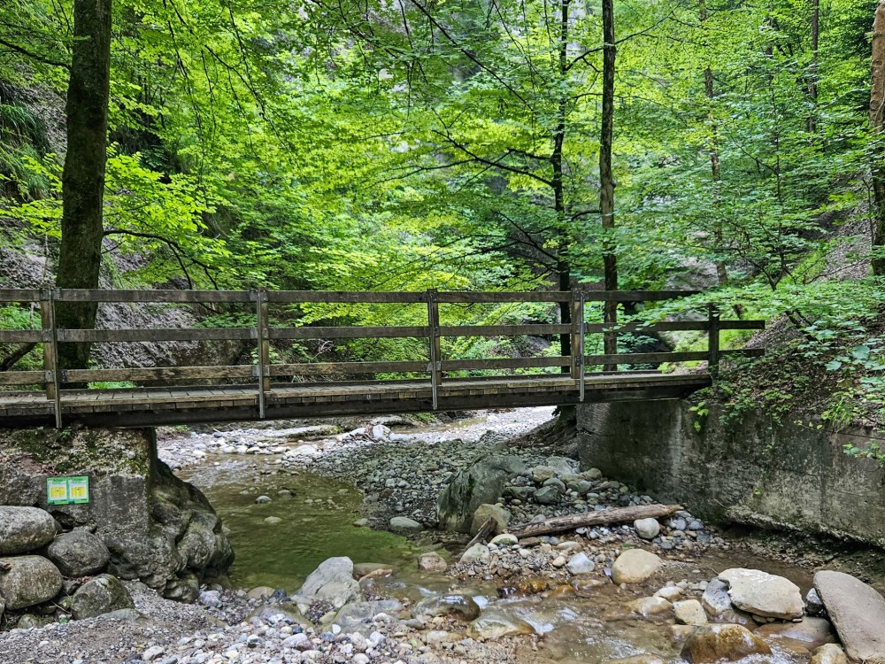 Der Startpunkt dieser abwechslungsreichen Wanderung liegt in Hünibach. Von dort führt der Weg zunächst durch ein kleines Wäldchen in Richtung Cholereschlucht. Kaum betritt man den Eingang zur Schlucht, sorgt ein frischer Luftzug für Abkühlung – eine Wohltat, besonders an warmen Sommertagen. Die Cholereschlucht begeistert mit ihren rauschenden Wasserfällen, den sprudelnden Bächlein und der beinahe exotisch anmutenden Kulisse. Der teilweise steile Aufstieg fällt dank des kühlen Klimas und der eindrucksvollen Natur leichter. Unterwegs laden mehrere Rastplätze ein, kurz innezuhalten und die besondere Atmosphäre auf sich wirken zu lassen. Nach dem Anstieg gelangt man über eine Strassenquerung ins idyllische Dorf Goldiwil. Von hier aus beginnt der Abstieg in Richtung Steffisburg. Der Weg führt abwechslungsreich vorbei an grünen Wiesen, traditionellen Bauernhöfen und durch schattige Waldstücke, bevor er über befestigte Wege direkt zur Busstation in Steffisburg hinabführt. Diese Tour ist besonders an heissen Tagen ein Genuss: Die kühle Brise in der Cholereschlucht und die landschaftliche Vielfalt machen sie zu einem Erlebnis für Gross und Klein.