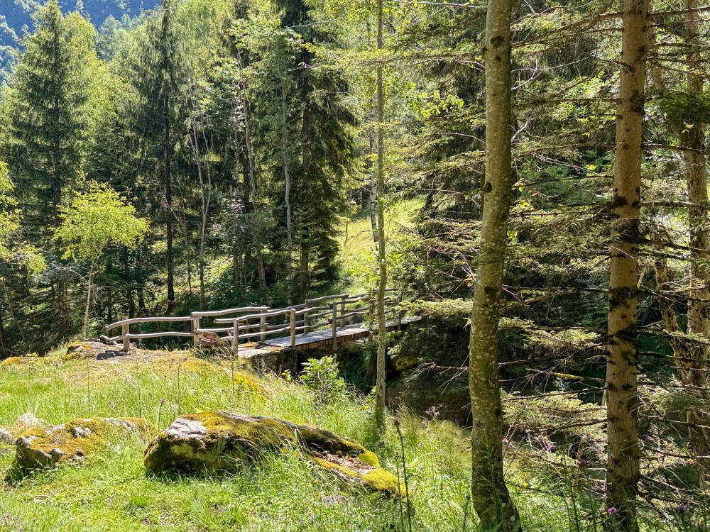 Holzbrücke über den kleinen Bergbach Ri d’Arnau. Bild: Yolanda Loosli