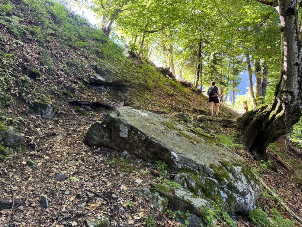 Mit Moos bewachsene Felsen schmücken den Wanderweg.. Bild: Yolanda Loosli