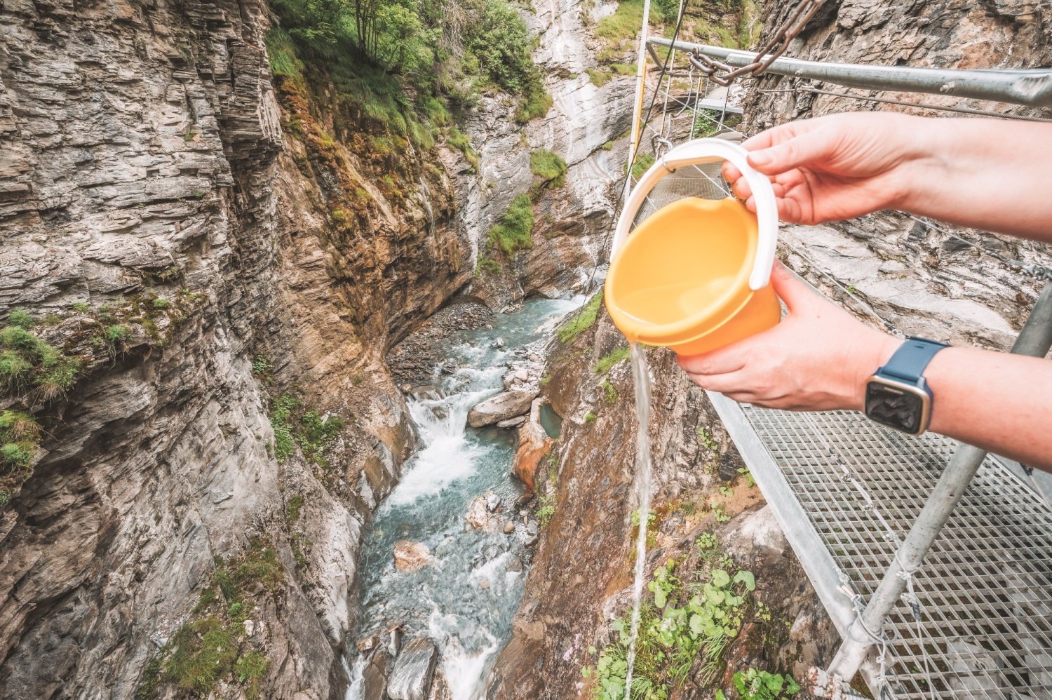Die Thermalquellen-Steg Wanderung führt durch die Dalaschlucht und macht die Thermalquellen von Leukerbad direkt erlebbar. Auf rund 600 Metern verläuft der Steg über dem Bachbett und vorbei an mehreren natürlichen Austrittsstellen des warmen Wassers. Entlang der Strecke vermitteln interaktive Elemente Wissen zur Entstehung des Thermalwassers und laden zum Beobachten und Staunen ein. Mit einem einfachen Seilzug kann Thermalwasser aus einer Quelle hochgezogen werden. Audioerklärungen mit wissenswerten Informationen regen zum Mitdenken an und vertiefen das Verständnis für das Naturphänomen. Eine Hängebrücke führt zu einem 35 Meter in die Tiefe stürzenden Wasserfall, wo die Kraft des Wassers deutlich spürbar wird. Am Ende des Stegs bestehen verschiedene Möglichkeiten, die Wanderung fortzusetzen oder eine Pause einzulegen. Die Wanderung verbindet Bewegung, Natur und Wissen auf anschauliche Weise und kann auf Wunsch individuell gestaltet werden.