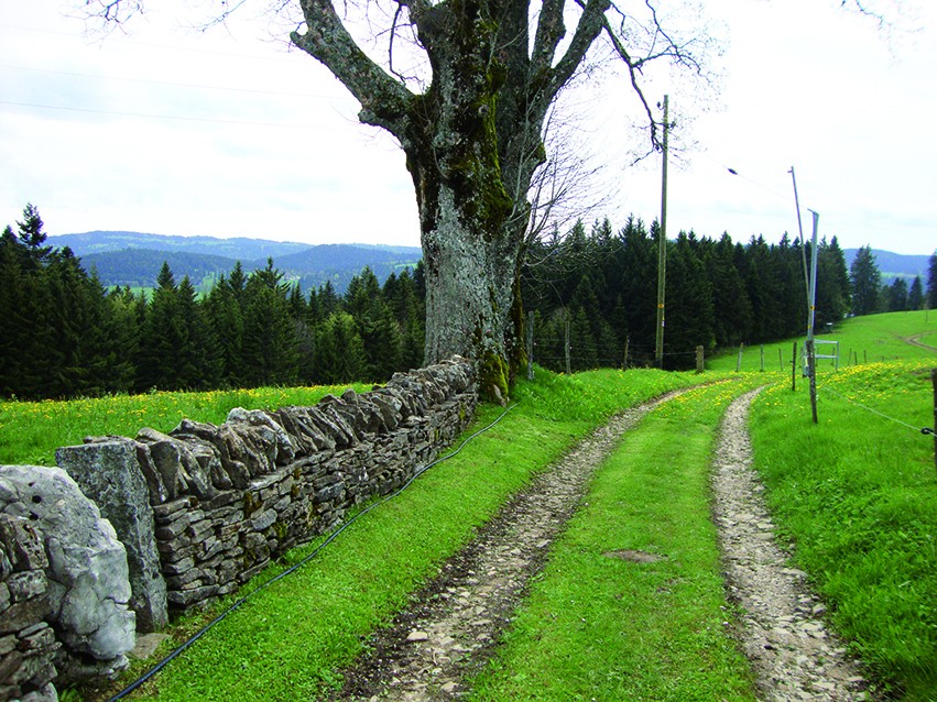 Über den Weg Emposieux Abstieg in den Graben von Valanvron. Nach den "Anciens Moulins" in Richtung der STEP (ARA) einbiegen. Nach der Kläranlage dem ausgetrockneten Flussbett "La Ronde" folgen. 130 Meter nach einer Försterhütte links in einen nur knapp markierten schmalen Pfad zum Wiederaufstieg nach Valanvron abzweigen. Bei der Haute Fie dem rechts abzweigenden Weg hinunter zum rechten Seeufer des Cul-des-Près und weiter in Richtung Biaufond folgen.