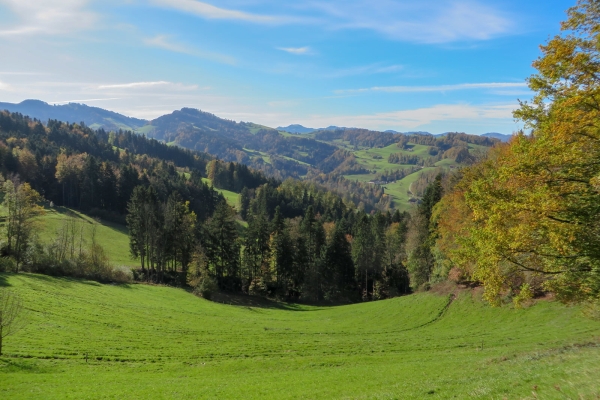 Diese Frühlingswanderung startet in der wunderschönen Freiburger Altstadt. Sie führt durch Gässchen, vorbei an Kirchen und je nach Wochentag quer durch den Bauernmarkt. Von hier aus folgt man der Galterenschlucht und läuft auf einem hügeligen Weg bis nach Plaffeien. Die rund sechsstündige Wanderung ist die erste Etappe des Freiburger Voralpenwegs. Dieser Weg ist von kleinen Kapellen gesäumt. Die bemerkenswerteste findet sich in St. Ursen: die St.-Ursus-Kapelle wurde im Spätmittelalter gebaut und ist ein seltenes Beispiel einer Kirche mit Ausstattung aus verschiedenen Epochen. Weiter geht es über Wald und Wiesen bis nach Rechthalten, vorbei an prächtigen Bauernhäusern und Kuhweiden. Der Weg ist angenehm, führt manchmal entlang der Hauptstrasse, ist aber meistens ein weicher Wald- oder Wiesenweg. In Rechthalten lädt die prächtige Barockkirche zum Besuch ein, und Restaurants bieten sich zur Pause an. Ab hier wird die Landschaft nun bergiger. Die Hügel sind steiler, die Täler tiefer, die Wälder werden luftiger und nadeliger. Stetig geht es bergauf, die Schlusssteigung bringt einen gehörig in Schwitzen. Die Mühe lohnt sich aber: Mitten im Wald erreicht man den höchsten Punkt der Wanderung, das Buechenchäppeli auf 1032 Metern. Auf der kleinen Lichtung wurde rund um die Kapelle ein schöner Rastplatz angelegt. Wenn man nachher den Wald verlässt, eröffnet sich einem ein prächtiger Ausblick in die Freiburger Alpen. So geht es flink hinunter nach Plaffeien. Eine weitere Kirche schliesst diese Wanderung ab: Die 1910 nach einem Brand neu erbaute katholische Pfarrkirche von Plaffeien ist die grösste neuromanische Kirche des Kantons Freiburg. Ein imposantes Bauwerk.