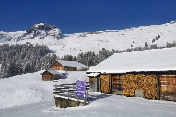 Die aussichtsreichste Winterwanderung des Saanenlands führt auf den Hugeligrat. Der gut besonnte Bergrücken oberhalb von Schönried bietet eine umfassende Rundsicht auf den weiten Talboden von Gstaad, ins angrenzende Pays d’Enhaut und zu den Felszacken der Gastlosen. Seit die Bahnen und Pisten im Skigebiet Rellerli stillgelegt wurden, gehört die Gegend ganz den Liebhabern stiller Naturgenüsse. Im Winter zählen dazu die Schneeschuhläufer und die Winterwanderer; für beide Gästegruppen sind dort eigene Routen ausgesteckt. Eine als Rundweg angelegte präparierte Winterwanderroute zieht sich von Schönried den Hang hinauf bis zum Hugeligrat. Mit gut 700 Höhenmetern Auf- und Abstieg ist die Tour kein blosser Spaziergang, sondern eine echte winterliche Wanderung, die den Kreislauf ordentlich in Schwung bringt. Wird die Wanderung wie hier vorgeschlagen im Uhrzeigersinn ausgeführt, so folgt auf einen steilen Aufstieg ein Abstieg mit moderatem Gefälle, was einen ausgiebigen Genuss des üppigen Panoramas erlaubt. Wer den Ausflug mit einer speziellen Note versehen will, nimmt einen Schlitten mit und funktioniert den Abstieg in eine rasante Abfahrt um; in diesem Fall empfiehlt es sich, die Tour in umgekehrter Richtung anzugehen.