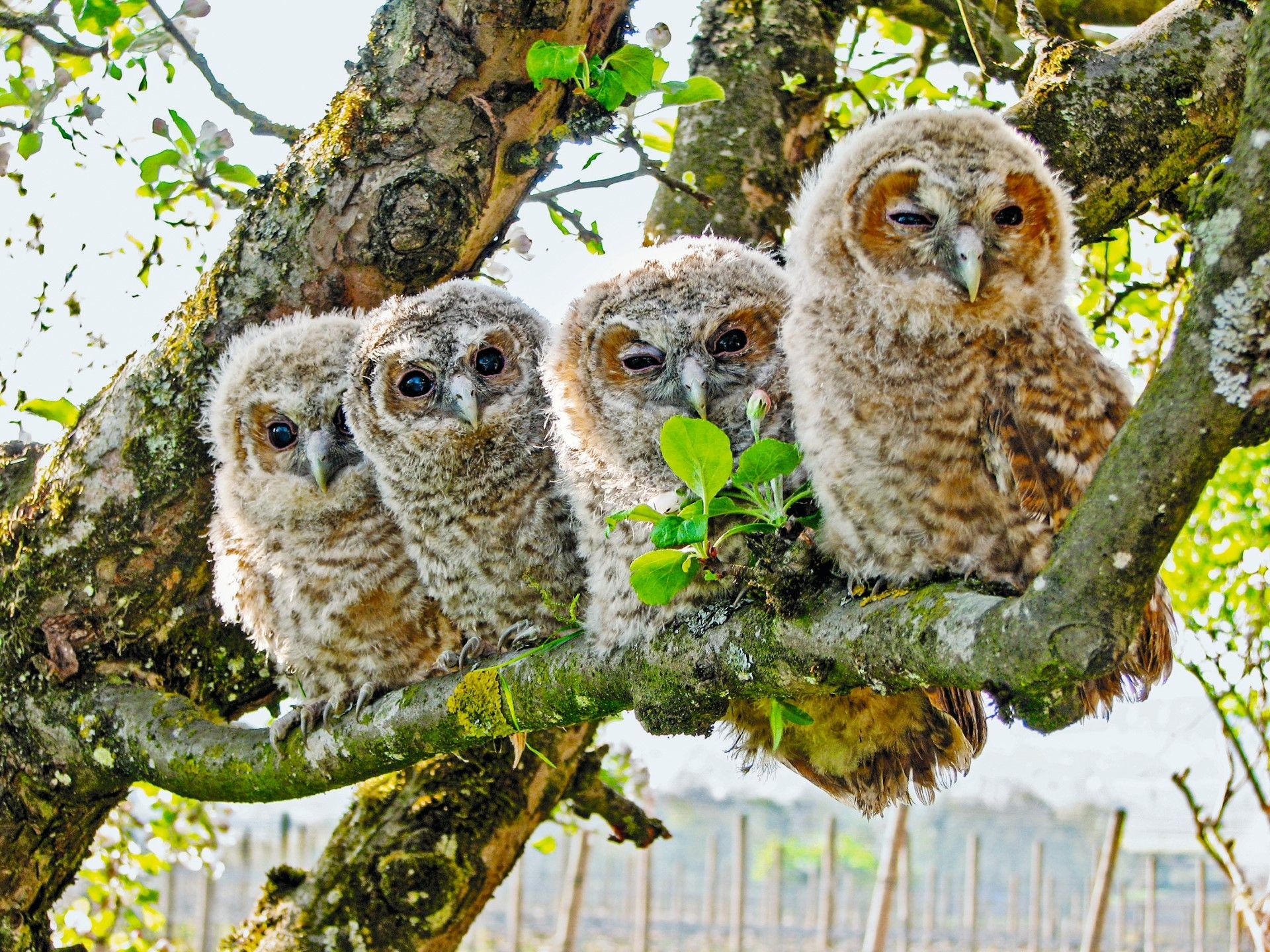 Les hulottes juvéniles quittent le nid sans savoir voler et sont encore nourries par leurs parents.