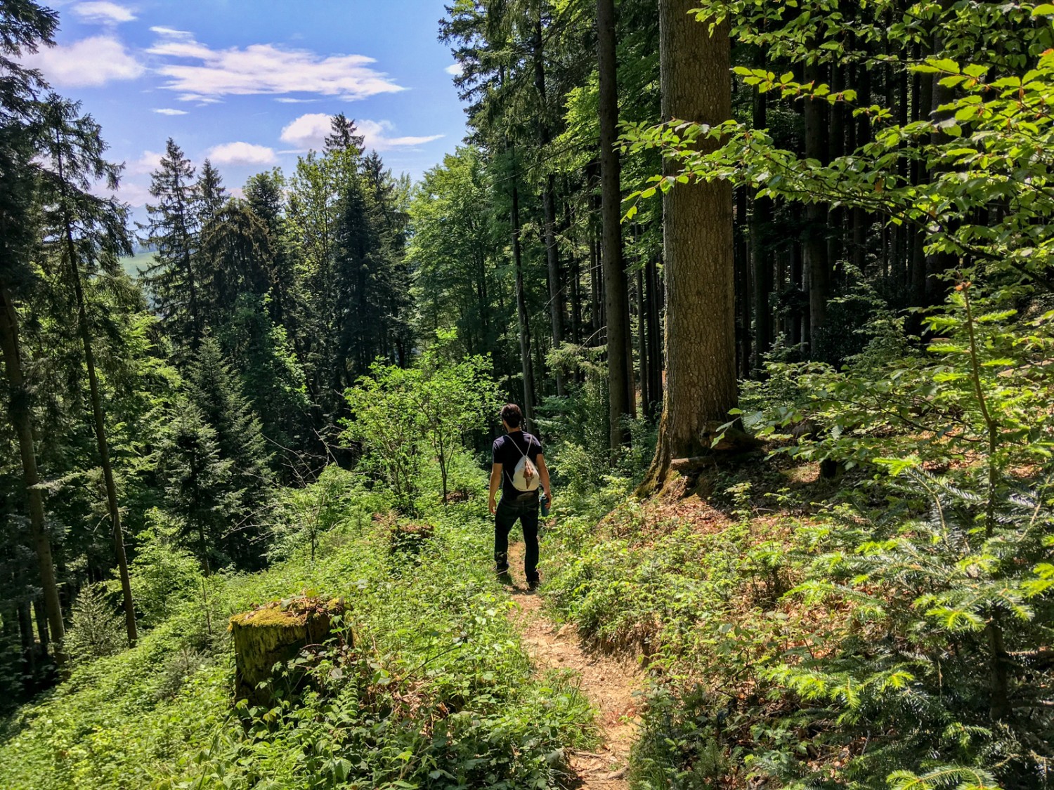 Le sentier «Eggen Höheweg» offre de très belles vues sur la région d'Appenzell. Stein (AR), le lieu de départ, accueille le musée folklorique appenzellois et une fromagerie de dégustation. Entre l'église et le cimetière, les marcheurs rejoignent le sentier pédestre «Kulturspur‑ Appenzellerland» (itinéraire de SuisseMobile n° 22) qu'ils peuvent suivre jusqu'au bout, à savoir Trogen. L'itinéraire qui passe par Böhl descend d'abord dans les gorges du Sittertobel. On traverse la Sitter au niveau du «lieu de baignade». Sur l'autre versant, on remonte vers Gmünden puis, sur une pente moins raide, vers le couvent de capucins de Wonnenstein. Après la séparation de l'Etat d'Appenzell, son appartenance territoriale a fait l'objet de longues controverses. Au XIXe siècle, les autorités fédérales décidèrent alors que le territoire situé à l'intérieur des murs du couvent appartenait au demi‑canton (catholique) d'Appenzell Rhodes‑Intérieures. En passant par les gorges de Rotbach, on parvient à la place du village de Teufen puis, après une brève montée, sur le chemin «Eggen Höheweg». La vue sur le charmant paysage de collines de l'Appenzell et sur l'imposant massif de l'Alpstein, à l'horizon, est impressionnante. Après une petite ascension au niveau d'Oberhorst, on descend, en profitant d'une vue somptueuse sur la Principauté et le lac de Constance, jusqu'à la Vögelinsegg puis sur la crête vers Holderschwendi. L'itinéraire mène ensuite par Speicher et Witi jusqu'à Trogen, but de la randonnée. Sur la place de la Landsgemeinde, on admirera les magnifiques palais construits jusqu'au XVIIIe siècle par la famille Zellweger, qui donnent au lieu une allure presque citadine.