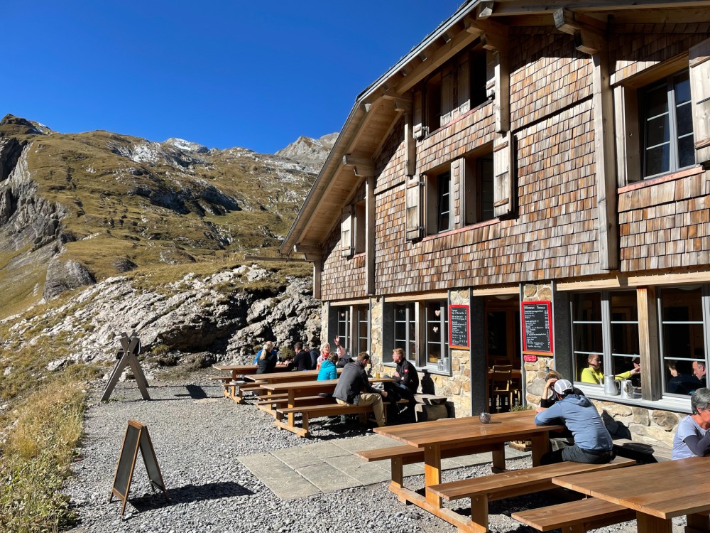 La Geltenhütte et sa terrasse ensoleillée. Photo: Rémy Kappeler.