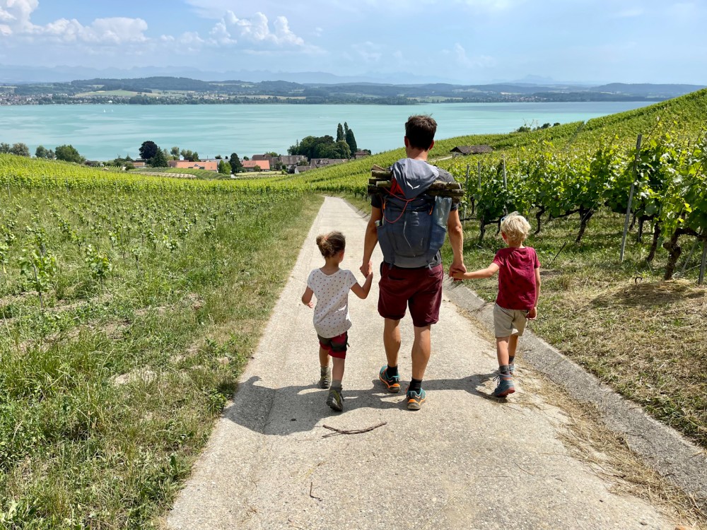 • Montée par les vignes de Sugiez. La première partie est bétonnée. Photo: Michael Roschi