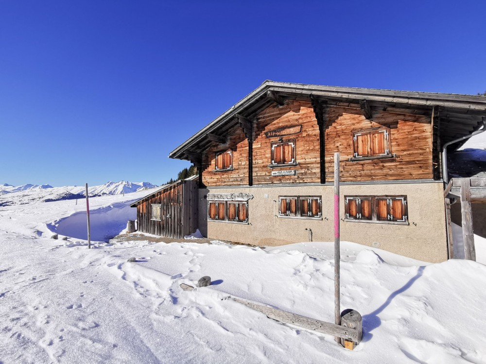 L’auberge de l’alpage dil Plaun est malheureusement fermée en hiver.. Image: Andreas Staeger