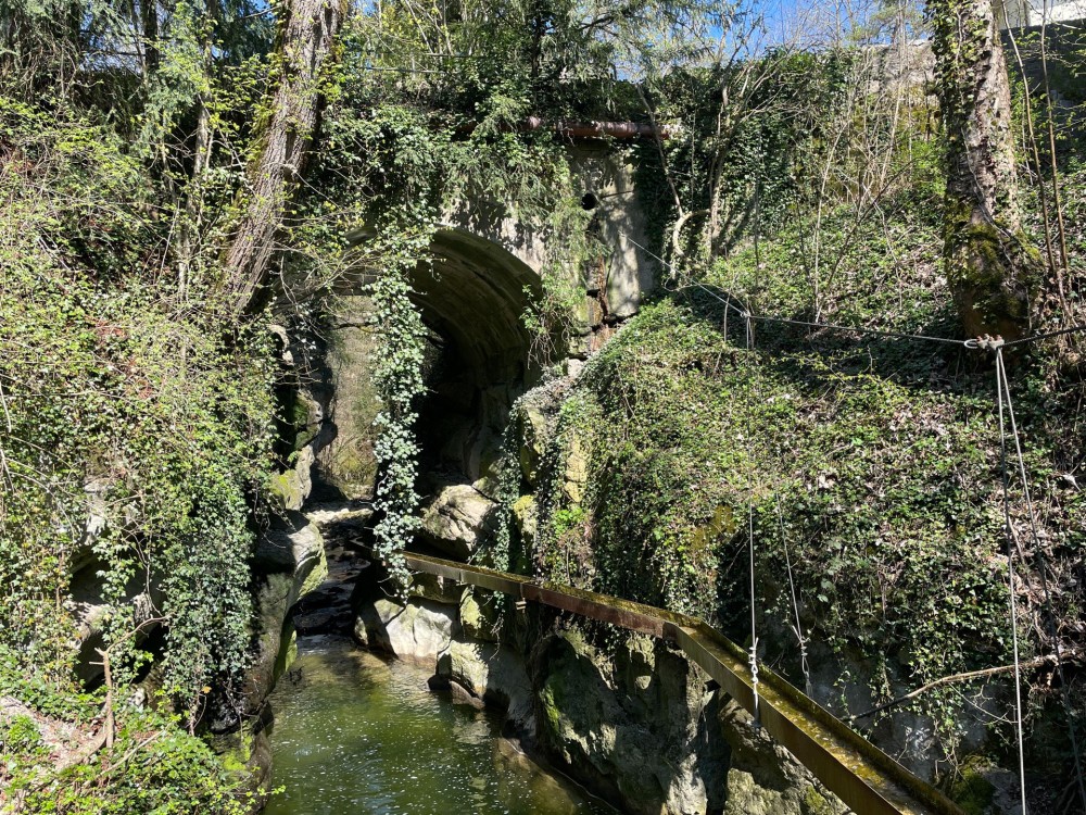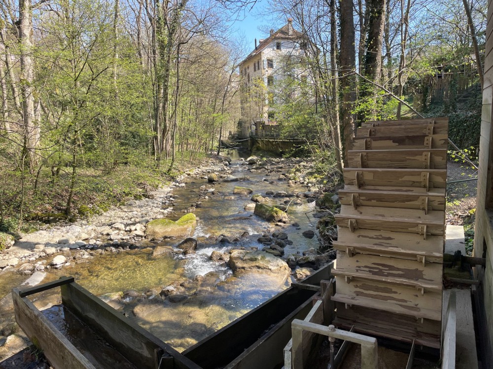 Un chenal conduit l’eau jusqu’aux roues du moulin au Gor de Vauseyon.. Image: Rémy Kappeler