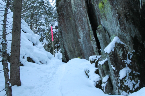 Cette randonnée dans le parc naturel du Gantrisch traverse une surface dite de chablis, une zone d’arbres déracinés, due à l’ouragan Lothar en 1999. Le chemin de randonnée longe une crête d’où l’on voit, côté ouest, le Plateau, le Schwarzenburgerland et le Jura et, côté est, la chaîne du Gantrisch et les 4000 bernois. Après Schwarzenbühl, l’itinéraire mène sur le versant sud du Gägger par la passerelle en bois du même nom. Elle traverse une surface de chablis, parfois à plusieurs mètres de hauteur, près d’arbres tombés et de souches. Peu après la tempête dévastatrice, il régnait ici un fouillis impénétrable d’épicéas déracinés et brisés. Depuis, de petits arbres repoussent entre le bois mort et la surface de chablis est pleine de vie. Des panneaux précisent que le bois mort et le «désordre» sont importants pour la biodiversité, car ils offrent un habitat aux insectes, aux oiseaux et aux mammifères. La forêt en croissance se compose de davantage de feuillus. Elle est plus diversifiée que la forêt d’épicéas d’origine, uniforme, et résistera mieux aux futures tempêtes. Une fois le Pfyffe franchi commence la descente vers Zollhaus. Peu avant ce lieu, on passe la frontière entre les cantons de Berne et de Fribourg.