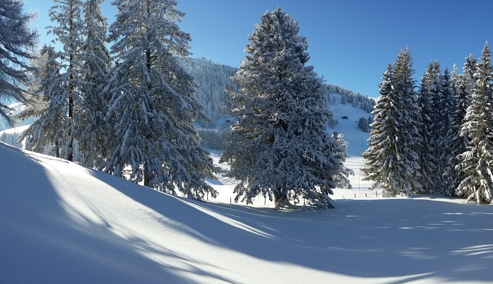 Winterwanderausrüstung mit Schneeschuhen/Stöcken und LVS/Schaufel/Sondierstange. Materialmiete auf Anfrage.