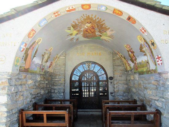 Sous son socle se trouve une chapelle ornée des treize armoiries valaisannes et de peintures de saints, où se déroulent les cérémonies et bénédictions.
