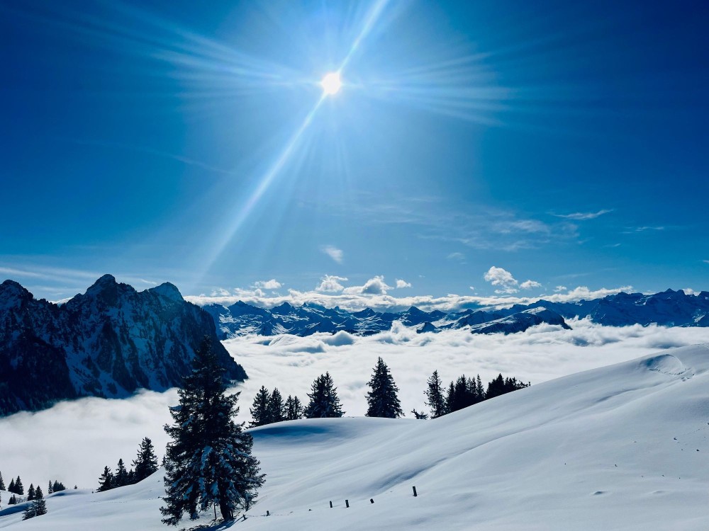 Panorama Schneeschuhwanderung über Spilmettlen und Hochstuckli SZ