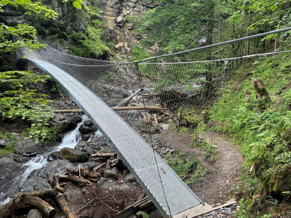 Über die neue Hängebrücke beim Steibi