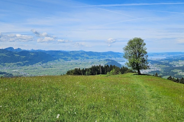 Der Panoramablick von der Holzegg hinunter über den Schwyzer-Talboden und hinüber zum Stoos ist faszinierend. Auch die Mythen, das Wahrzeichen vom Flecken Schwyz die auf Augenhöhe vor uns stehen sind immer wieder beeindruckend. Für den schweisstreibenden Aufstieg zur Halbegg werden wir dann auf dem Panorama Trail zum Furggelenstock mit einer exzellenten 360° Rundsicht belohnt.