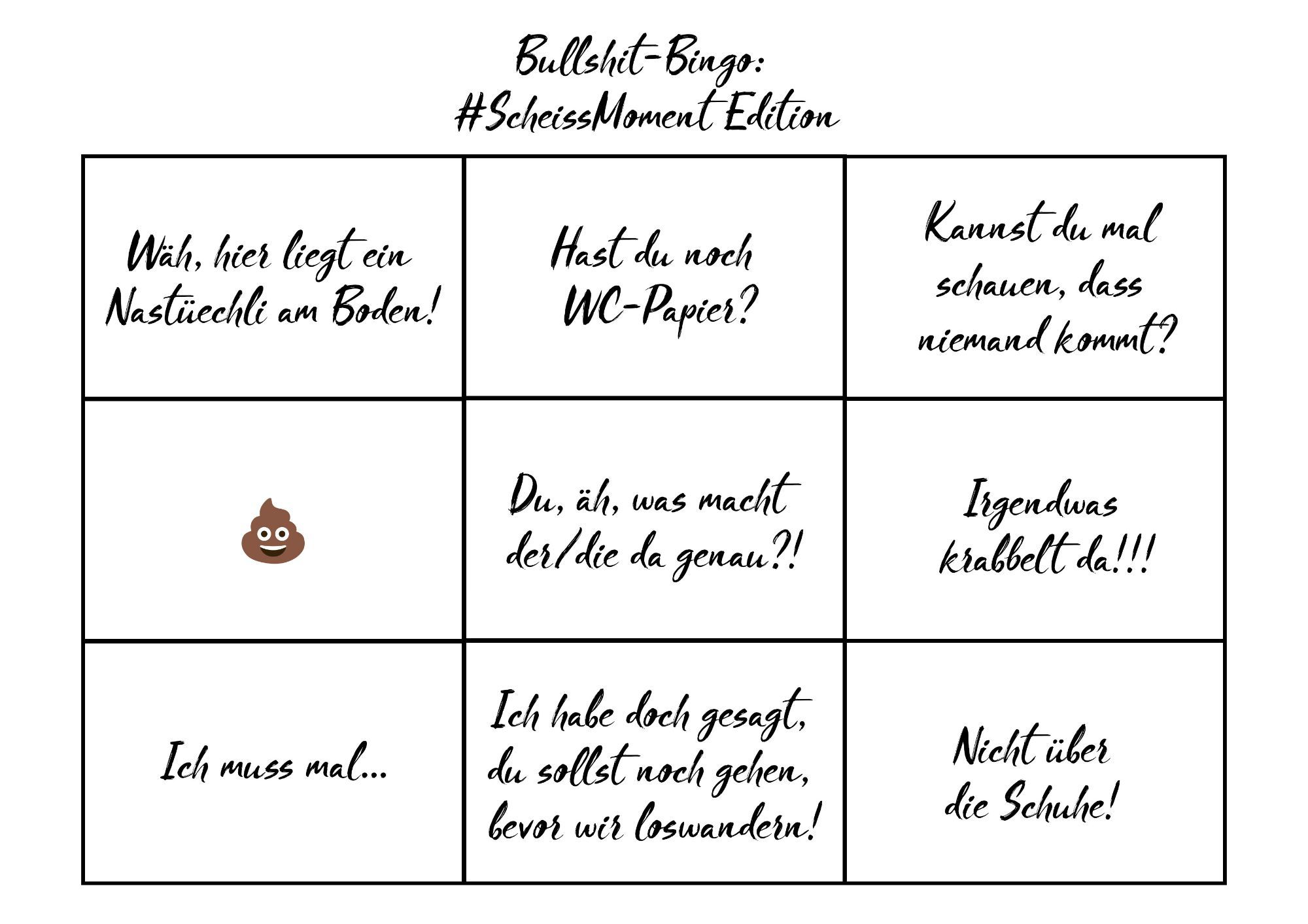 Joue au Bullshit Bingo – Édition #Posetapeche. Envoie-nous la preuve d’une ligne complète (photo ou capture d’écran) par e-mail à info@schweizer-wanderwege.ch ou mentionne-nous sur Instagram: @schweizerwanderwege.ch.rando et @schweizeralpenclub et utilise le hashtag #Posetapeche