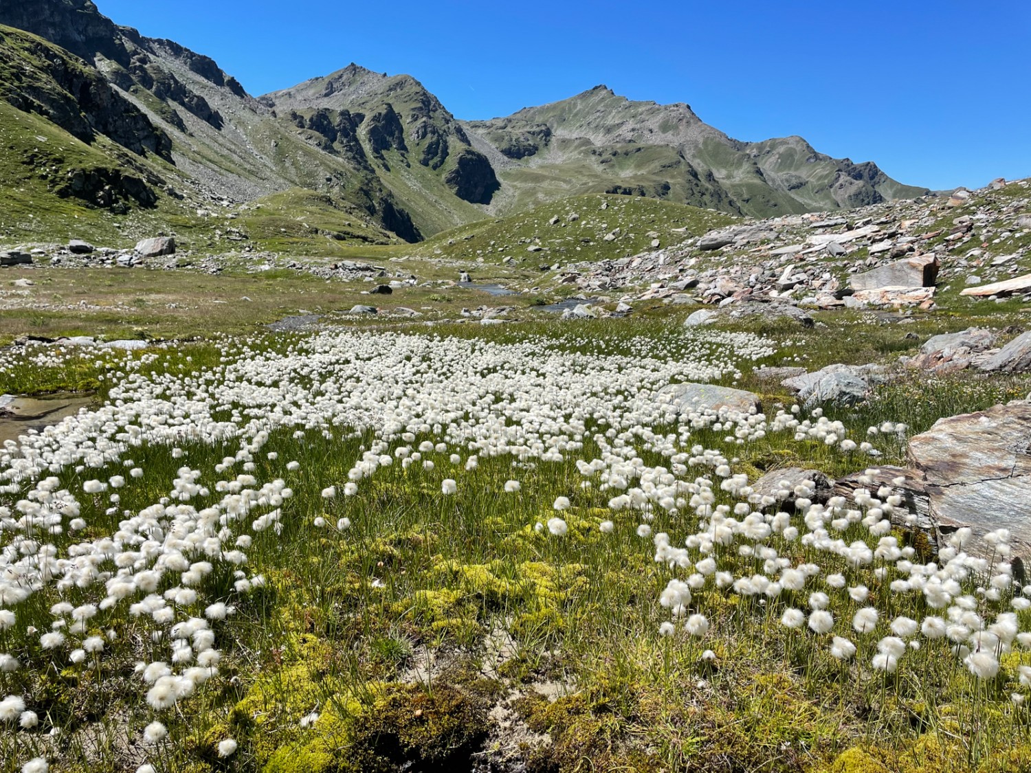 Die Wanderung beginnt beim Simplon-Hospiz. Der Weg führt zunächst ein kleines Stück der Strasse entlang und zweigt dann links ab. Hinter der rostigen Barriere und dem Wegweiser nach Simplon Dorf verschwindet der Verkehrslärm, und eine schöne Moorlandschaft mit kleinen Tümpeln und dem Rotelschsee tut sich auf.