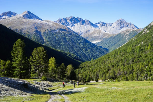 Durch den Schweizer Grand Canyon nach Flims Die Bahn bringt Wandernde durch die wunderschöne Rheinschlucht nach Valendas Sation, das weit oben im Hang liegt. Die Wanderung führt durch die imposanteste Schlucht der Alpen. Vor 14 000 Jahren, als die Gletscher der Eiszeit zurückwichen, lösten sich gewaltige Gesteinsmassen und stauten den Rhein zu einem riesigen See auf. Durch die Jahrtausende erodierte das Wasser einen Weg durch die hart gepressten Gesteins‑ und Staubmassen, woraus schliesslich dieses Naturspektakel entstand. Dem Bahngleis folgend, gelangen Wandernde zur Station Versam‑Safien. Hier, mitten in der Schlucht, befindet sich das Mekka der Riverrafter. Im kleinen Beizli besteht die letzte Möglichkeit, den Durst zu löschen, dann gehts weiter flussabwärts. Bald versperrt ein Felsriegel den Weg. Der Rhein umfliesst ihn in einer weiten Schleife, der Zug verschwindet in einem Tunnel und der Wanderweg führt darüber. Nach diesem kleinen Pass überquert man auf der Bahnbrücke den Rhein und steigt dann im Wald steil bergan. Dieses anstrengende Wegstück führt uns zur Aussichtskanzel von Conn. Unvergesslich, der Tiefblick in die Schlucht, wo die roten Züge der Rhätischen Bahn kleine Farbtupfer ins Grau der Felsmassen malen. Auf dem Weiterweg nimmt uns ein wunderschöner Wald mit diversen Spazierwegen auf. Der Markierung folgend, gehts zum Lay da Cauma. Der smaragdgrüne See liegt mitten im Wald, hat weder Zu‑ noch Abfluss und bietet im Sommer erfrischendes Badevergnügen. Ein Schräglift nimmt uns im Sommer den letzten Aufstieg ab. Im Wald gelangt man zur Post von Flims Waldhaus. Dort steht schon das Postauto bereit, das nach Chur hinunterfährt.